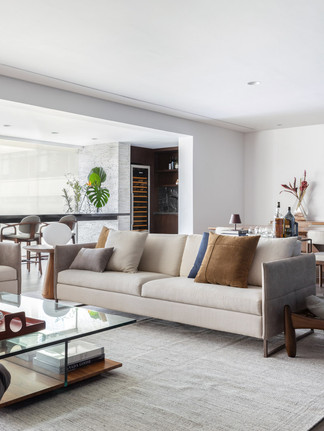 O projeto deste apartamento tem 260 m², assinado pelo escritório Sala2 Arquitetura, atemporal, sóbrio e elegante, foi um pedido dos clientes, pois seria uma moradia para uso a longo prazo. Queriam, também, algumas intervenções pontuais na planta, como a retirada da churrasqueira da varanda.