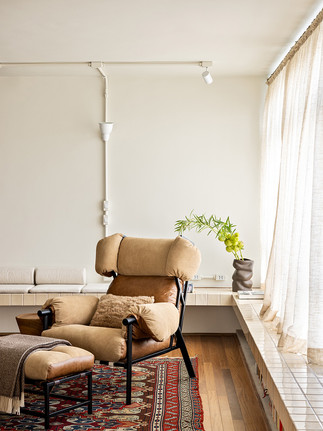 A escolha da totalidade do mobiliário fez parte do projeto, inclusive de peças esparsas de garimpo. A repaginação dos banheiros foi delicada mas impactante, com a substituição dos revestimentos e o redesenho das portas dos armários, e a iluminação agrega luz geral com pontual, feita por luminarias igualmente de garimpo.