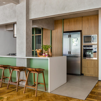 “Nosso maior desafio neste projeto foi reformar um apartamento dos anos 60 que nunca passou por uma reforma em mais de seis décadas. Quebramos todas as alvenarias para deixar o imóvel no osso e trazer o layout da planta para os dias atuais e as necessidades da família. A cozinha atual, por exemplo, hoje ocupa o lugar do antigo quarto de serviço, enquanto a cozinha antiga deu lugar ao banheiro social e também à área e banheiro de serviço”, conclui.