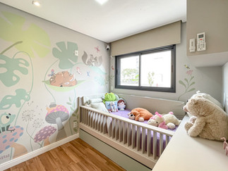 O quarto da filha do casal recebeu atenção especial, com uma arte personalizada, ela pode usufruir de um céu estrelado de fibra óptica para iluminara as noites. Já papel de parede trouxe uma divertida estampa de floresta.