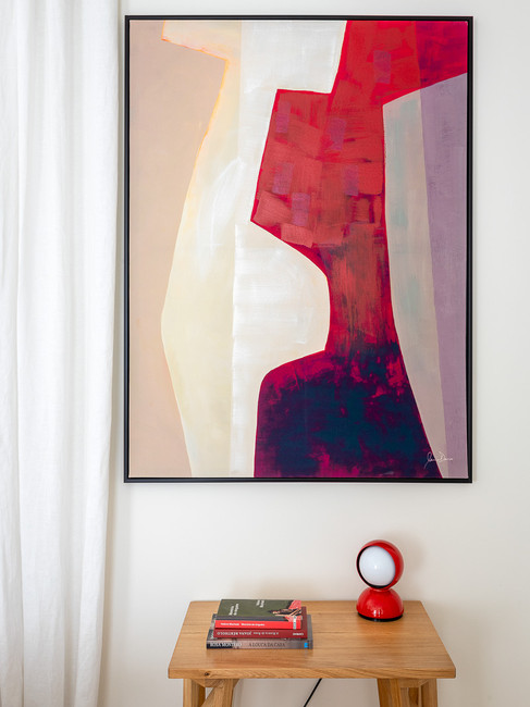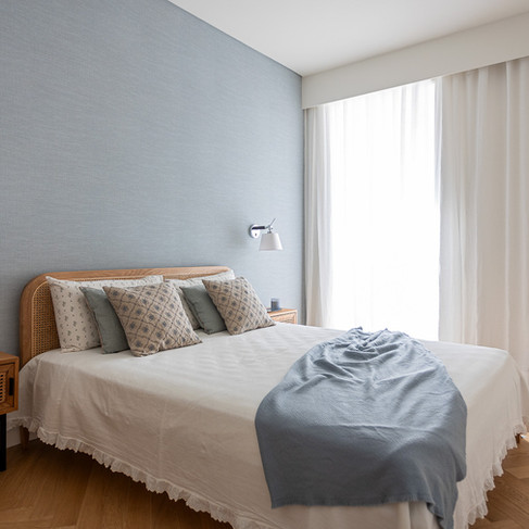 Como um dos principais desejos da proprietária era ter ali um ambiente tranquilo e sereno, os arquitetos priorizaram um design mais neutro com materiais naturais, como a madeira clara e os papéis de parede em nuances de nude e bege, que criam uma paleta suave e acolhedora. As cores mais fortes foram pontuadas em elementos como quadros, almofadas e objetos decorativos. O resultado é um espaço que transmite calma e sofisticação em cada detalhe, com uma sensação de amplitude e luminosidade que torna o ambiente perfeito para momentos de descanso e lazer.
