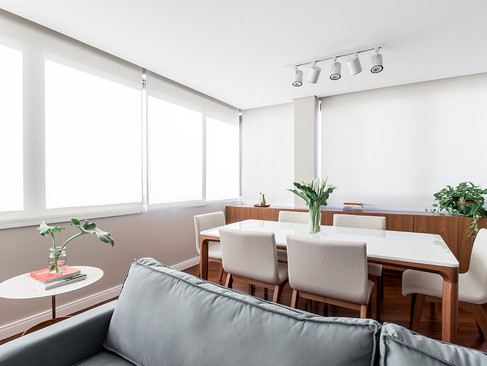 Atemporal e dinâmico, com 85m², o apartamento nasceu da premissa de criar um ambiente com espaços de convivência integrados