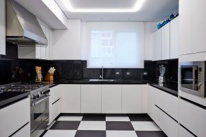 A ampla cozinha do apartamento se destaca dos demais ambientes da casa por não seguir o mesmo padrão de cor, além de utilizar um laminado especial da Ornare, que é resistente a riscos.
