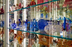 “Projetamos o perfumeiro pensando na divisão dos objetos e nas medidas certas, depois separamos os vidros por cor e fomos brincando com a disposição nas prateleiras”, explica a designer.