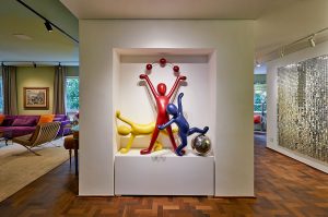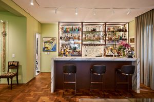 O pedido mais especial dos proprietários do apartamento foi que o novo lar abrigasse sua ampla coleção, que varia entre perfumeiros, canecas, telas, pingas, garrafas, e peças desenhadas pela proprietária, que é designer de joias.