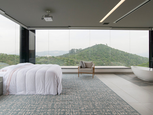 Os vidros da Guardian Glass estão presentes ainda em outras estruturas da mansão. A suíte master, por exemplo, é totalmente feita em vidro, assim como todo o guarda-corpo, que soma mais de 100 metros.