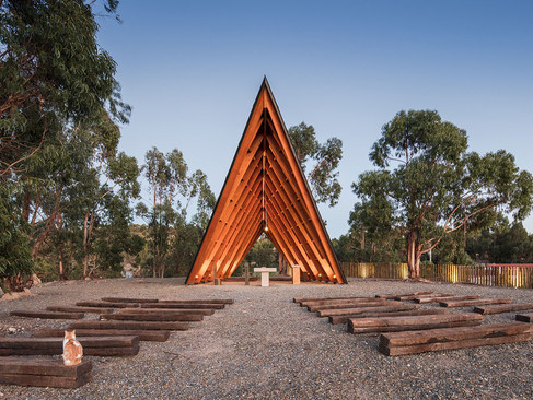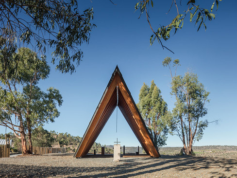 “Pensamos a capela como uma grande tenda, de portas abertas a todos, e em todos os momentos. Um ponto de acolhimento, abrigo e encontro. A sua forma muito simples, semelhante a uma tenda canadiana, estabelece-se em duas águas, que se moldam à utilização dos seus visitantes”, destaca a equipe de arquitetos da Plano Humano Arquitectos.