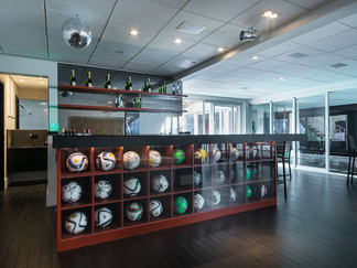“A balada foi realizada no subsolo da casa, pois, como é um condomínio de casas tivemos que fazer todo um tratamento acústico, super bem calculado, não alterando a decoração do ambiente. Na parte de cima fica a academia e o salão de jogos da residência”, explica a arquiteta.