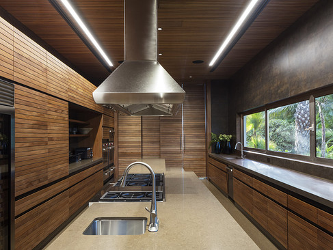 “A mão de obra local fez toda a diferença no acabamento do projeto. Além da perfeição na locação, construção das fundações e paredes em concreto que receberam as estruturas de aço e madeira, não foram negligenciados a qualidade artística dos acabamentos em pedra, madeira e cobre que dominam a composição estética dacasa”, destaca Matthieu Van Beneden.