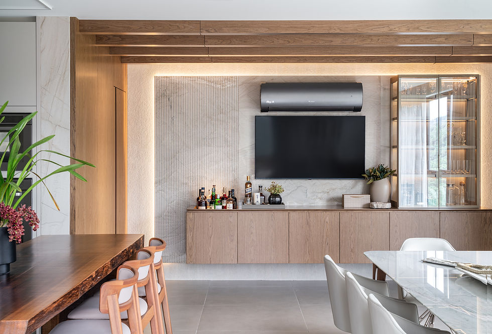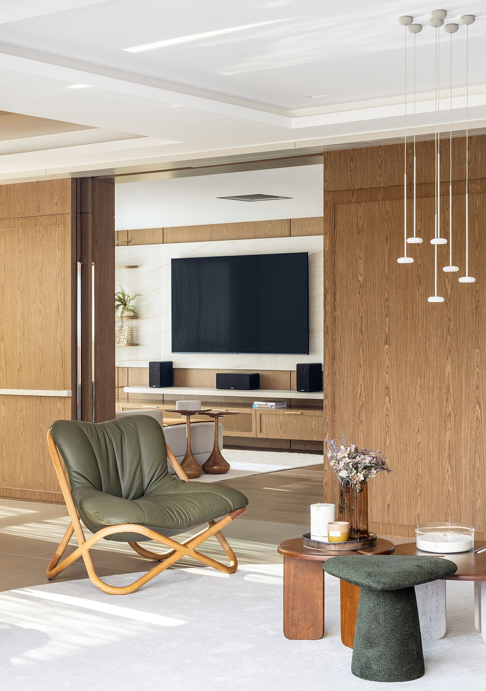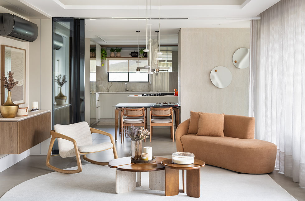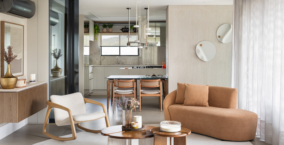 Em Blumenau, reforma estratégica transforma apartamento de 390 m² em um refúgio contemporâneo, onde fluidez, materiais naturais e iluminação sensorial definem a experiência de morar.
