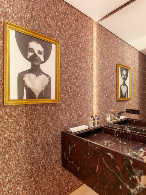 Na decoração, todos os móveis são novos e algumas obras de arte já faziam parte do acervo da cliente e foram aproveitadas no projeto. “Na área social, por exemplo, priorizamos móveis que se encaixavam em uma paleta cromática com base neutra e clara, em tons de cinza, justamente para destacar algumas dessas peças”, diz David. Já na suíte master a paleta neutra tem tons de bege claro, para transmitir delicadeza e serenidade, enquanto na suíte do filho prevalecem tons sóbrios e masculinos.