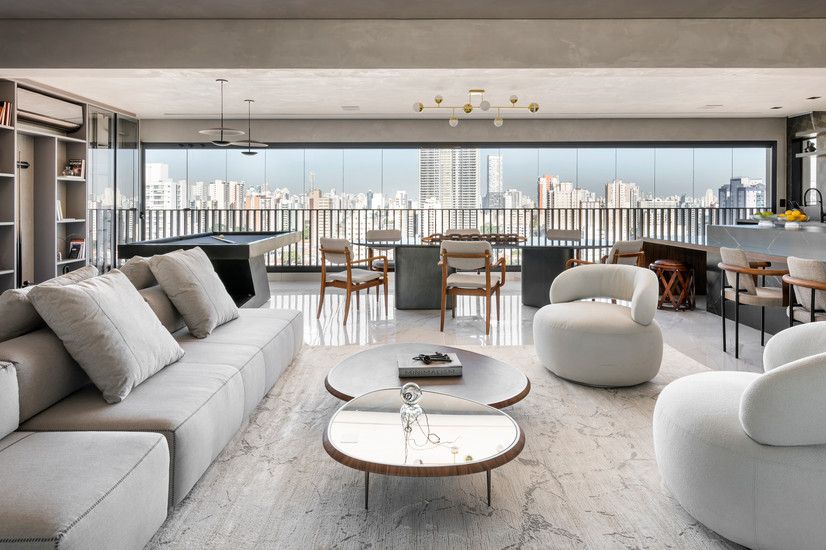 Design sóbrio e integração de espaços criam refúgio urbano no Tatuapé