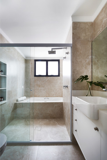 Banheiros revestidos de porcelanato, cozinha iluminada por LEDs e marcenaria sob medida completam o projeto, que une estética e praticidade. “A casa deixou de ser apenas moradia para se tornar espaço de lazer e bem-estar. Esse é o pedido que mais ouvimos hoje”, afirma Rosangela.