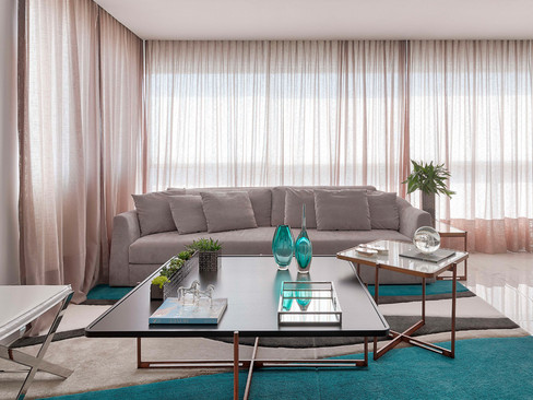 Demolir a parede entre a sala e a antiga varanda frontal foi o ponto de partida para criar o grande espaço de receber, pedido pelo casal que desejava ter um lugar para reunir os convidados de maneira mais formal. O ambiente composto por sala de jantar e estar foi projetado em uma paleta neutra, em que predominam os tons fendi, branco e preto.