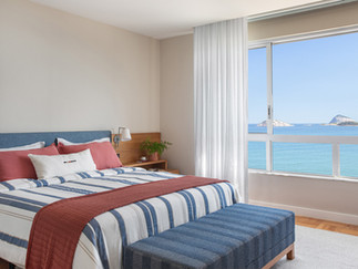 Projeto de reforma em Ipanema combina vistas para a Praia de Ipanema e Cristo Redentor, com decoração atemporal e ambientes amplos