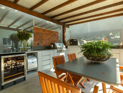 Para realizar a reforma, o escritório Jóia Bergamo precisou demolir algumas paredes, conseguindo a integração total dos ambientes. Além disso, foi criada uma edícula no fundo da residência, onde hoje fica localizada a academia e o escritório, já que o morador gosta de malhar e trabalha de casa.
