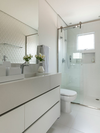 Assinado pelo escritório Jóia Bergamo Arquitetura e Interiores, o projeto exibe cores mais sóbrias, integração entre os espaços internos e externos, levando um pouco do verde do jardim para dentro da casa.
