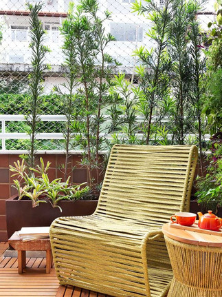 O projeto segue o estilo contemporâneo, sem excessos de adornos. A decoração da sala tem uma base neutra e clara, em tons de cinza, com toques de verde oliva, com predomínio de materiais naturais, como couro caramelo, madeira e fibra. “No ambiente de estar, usamos tapete de sisal com algodão e, na área de jantar, uma luminária pendente com formato orgânico e cúpula de rattan”, exemplifica Rômulo. Todas as peças são novas, entre adornos, acessórios, móveis e quadros, com destaque para as cadeiras Helga, a mesa de jantar Baloon e o sofá Lessa, todos assinados pelo Estudiobola e fornecidos pelo LZ Studio. Na suíte principal também é tudo novo, inclusive a marcenaria, integralmente desenhada pelo escritório, a exemplo do rack abaixo da tv, com quinas arredondadas, acabamento em laca branca acetinada e gavetas com puxadores amadeirados em cava. Já no escritório, além da bancada, o papel de parede, o tapete e a cortina de linho branco também são novos. “Aqui, o único ponto de cor está na varanda, ambientada com um poltrona e uma mesa de apoio de corda náutica amarela, da Tidelli”, finaliza Livia Amendola.